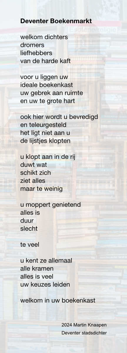 voor de boekenmarkt schreef ik onderstaand gedicht dat ik als boekenlegger uitdeelde.